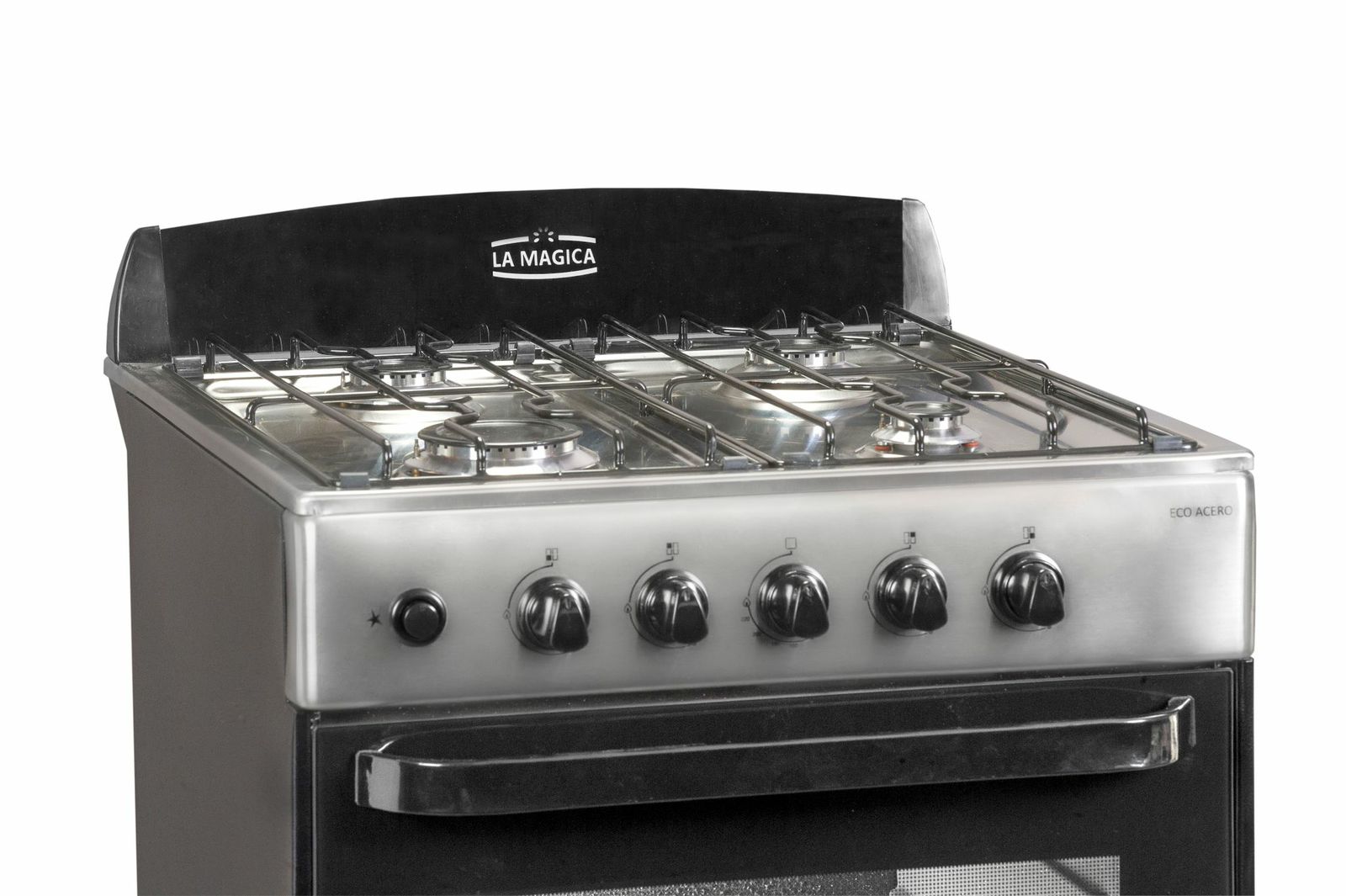 - Cristal puerta de horno y respaldo negro.